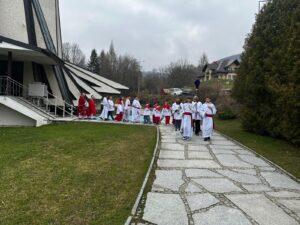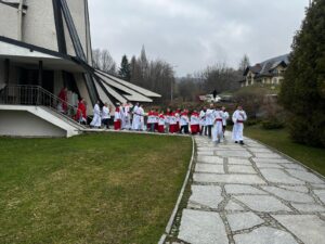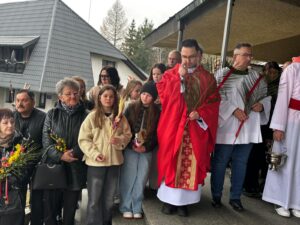 Następnie wierni wyruszają w procesji do kościoła. Ten moment ma szczególny charakter – przypomina wydarzenia sprzed dwóch tysięcy lat, kiedy tłumy witały Jezusa, wołając „Hosanna”. W parafii procesja staje się wyrazem wspólnoty i jedności – dzieci, młodzież, dorośli i osoby starsze idą razem, śpiewając pieśni i modląc się.
